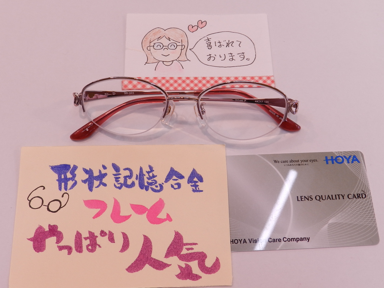 フレームは、エクセレントチタンを使った軽くて掛けやすいメガネになりました。