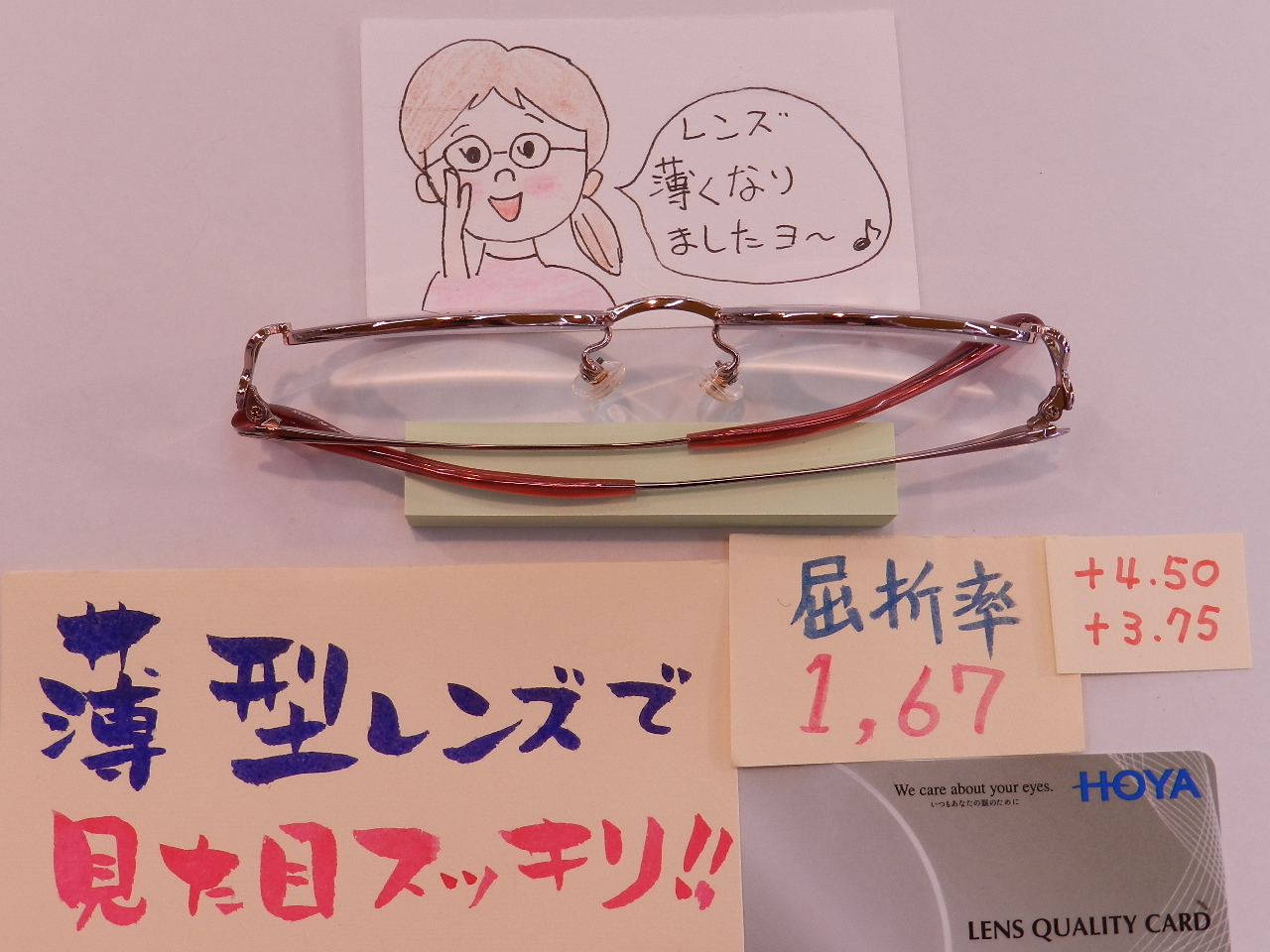 レンズも1.67の薄型をお使いいただき、