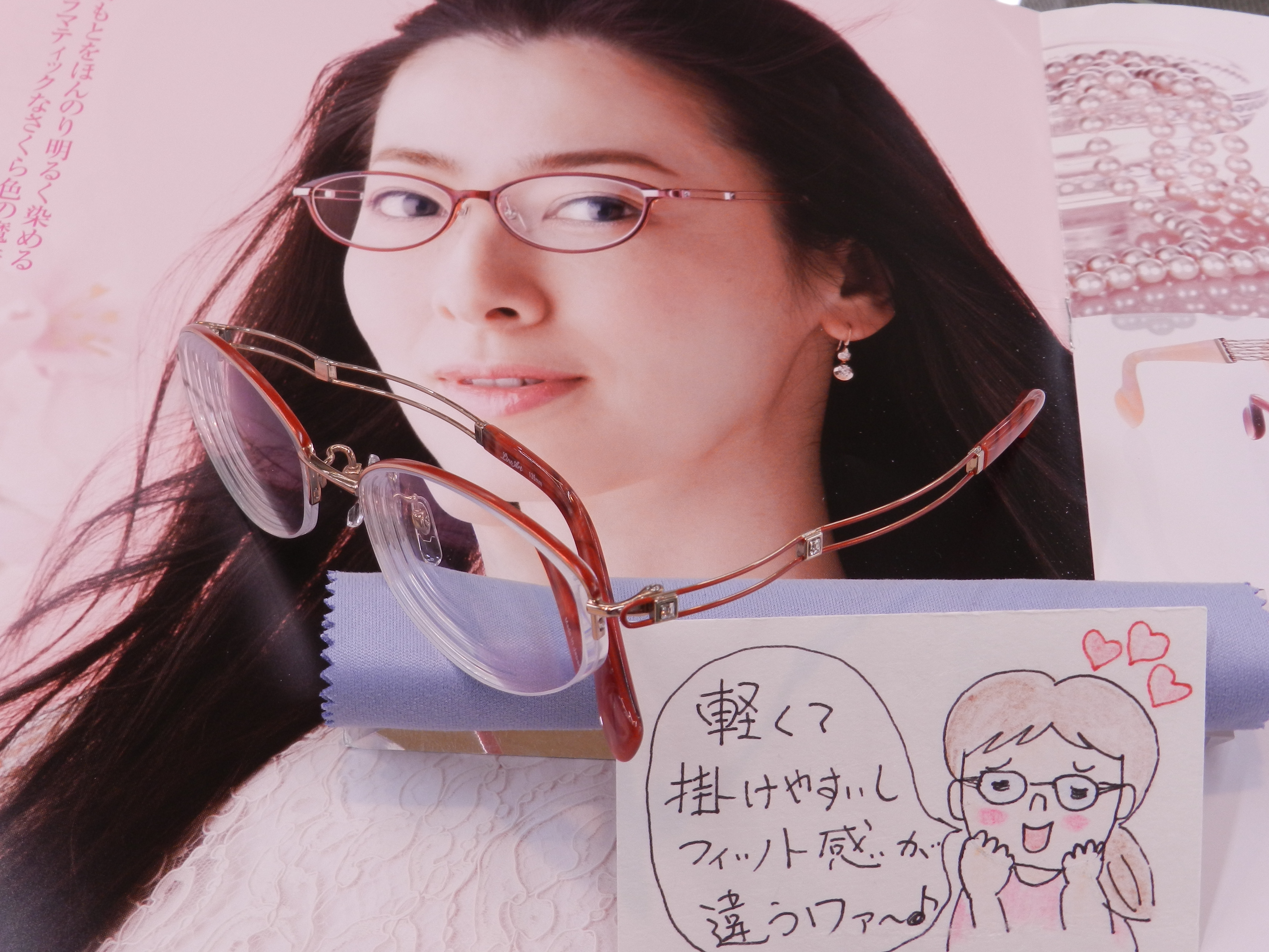 フレームは軽くて柔らかい掛け心地のラインアート。(*^^)v