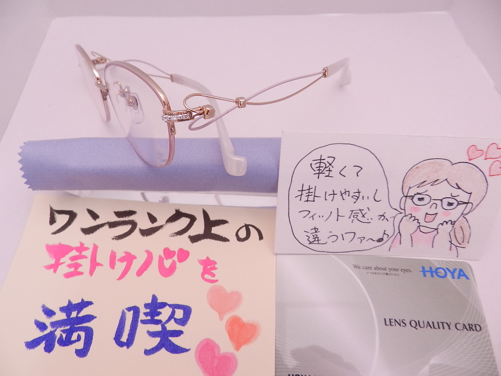 最近のお客様の傾向は、軽くて掛けやすいフレームをと、最初から決めてご来店下っています。ヾ(≧▽≦)ノ