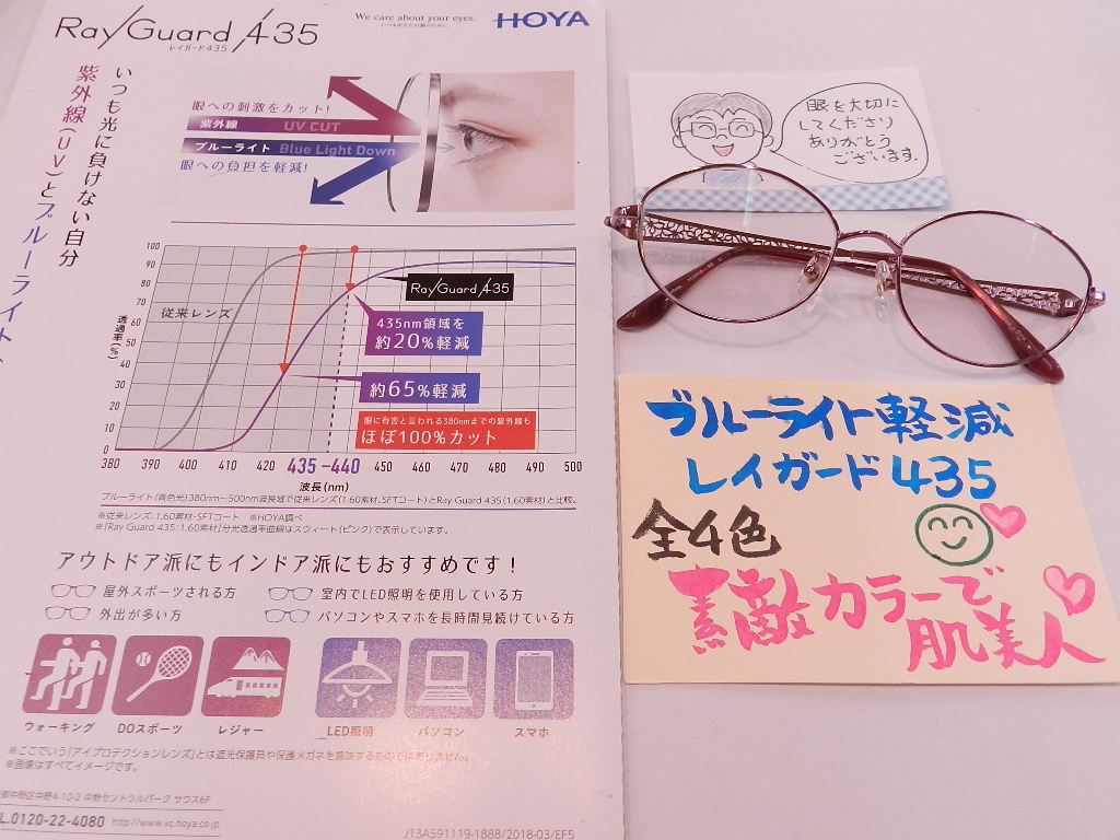 #HOYAレンズ #眼病予防 #ブルーライト軽減レイガード435 #室内でも暗くならないカラー