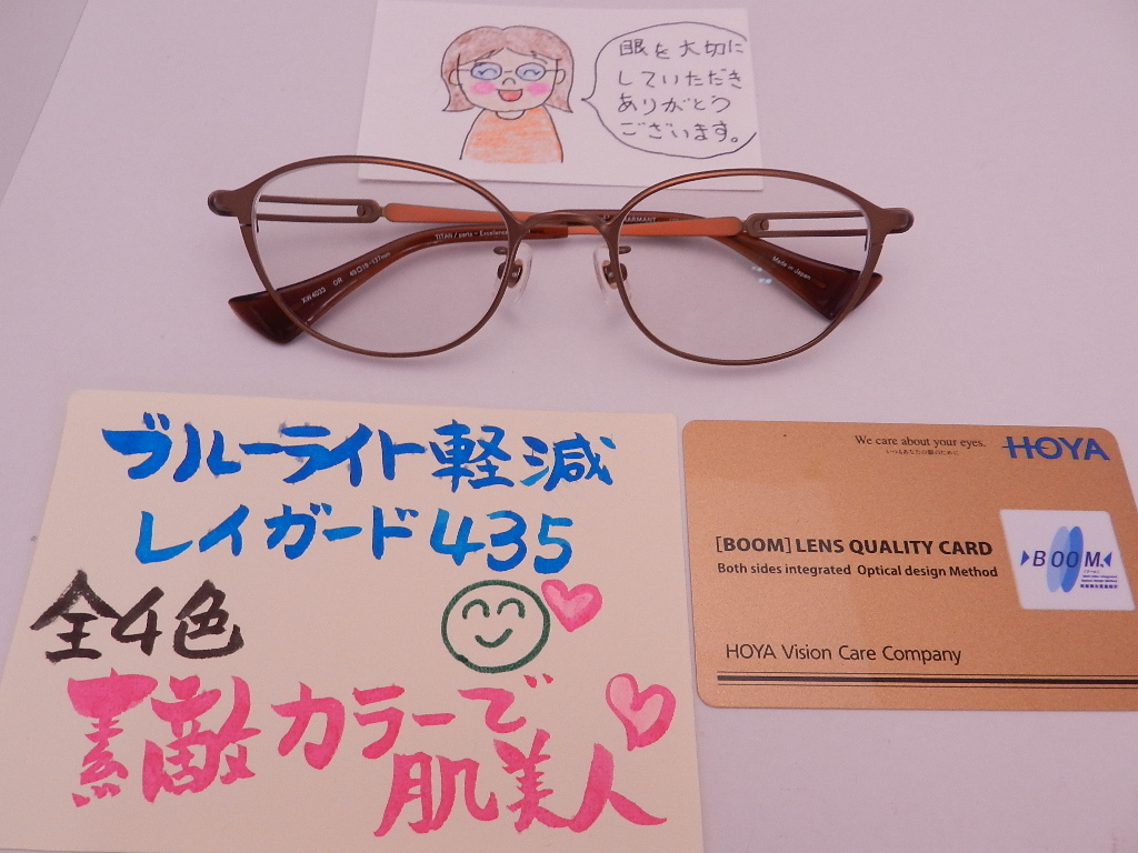 #HOYAレンズ #慣れやすい遠近両用[BOOM] #横が広く見やすいレンズ #眼の健康 #ブルーライト軽減カラー #レイガード435 #シャルマンフレーム #リーゴ #XW4033 #ORオレンジ #軽くて掛けやすいフレーム