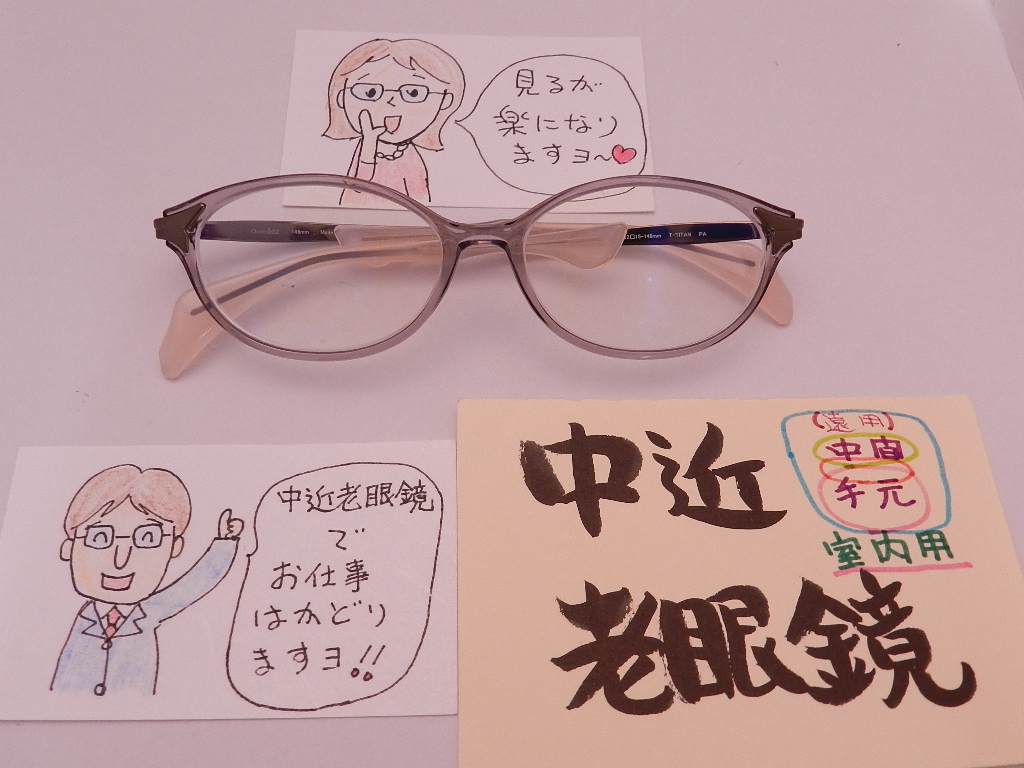 #中近室内老眼鏡 #加入度0.75 #眼科処方箋お受け致します #ブルーライト軽減コート #シャルマンフレーム #鼻あての無いフレーム #チョコシー #鼻に跡が残らない #軽いフレームです。