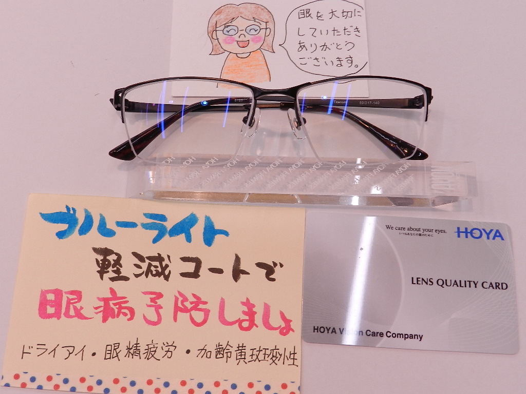 そして、眼の健康を考えたブルーライト軽減コートをお付けくださいました。