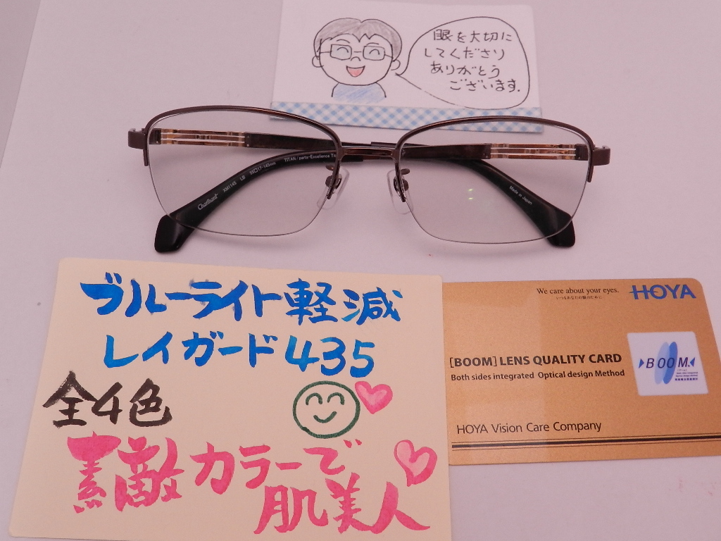 ブルーライト軽減のレイガード435ブラウン系でお作りいただきました。