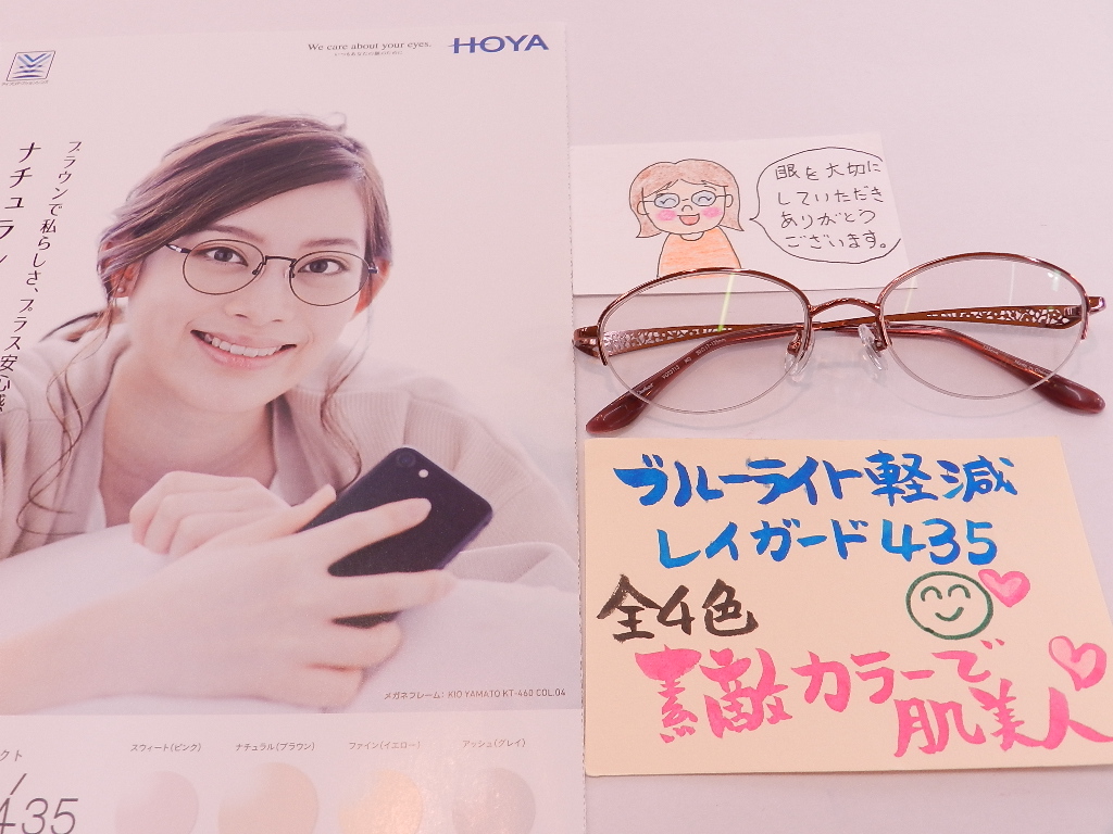 #HOYAレンズ #眼の健康を考えたブルーライト軽減 #眼の疲れ軽減 #レイガード435ブラウン系 #コート剥がれしにくいレンズ