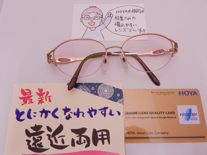 #HOYAレンズ #慣れやすい遠近両用[BOOM] #眼の健康を考えたブルーライト軽減のキャリアカラーをお使 #レンズを薄くする加工 #減る加工 #レンズの交換