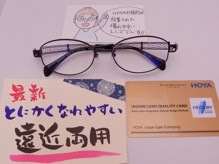 #HOYAレンズ #慣れやすい遠近両用[BOOM] #ブルーライト軽減コートラピス #シャルマンフレーム #ラインアート #軽くて柔らかい掛け心地のラインアート