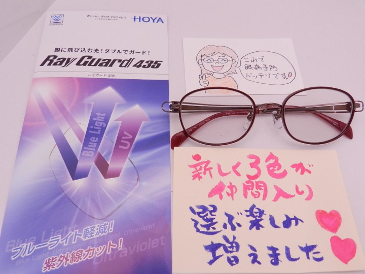 また、眼の健康を考えたブルーライト軽減レイガード435を付けていただきました。