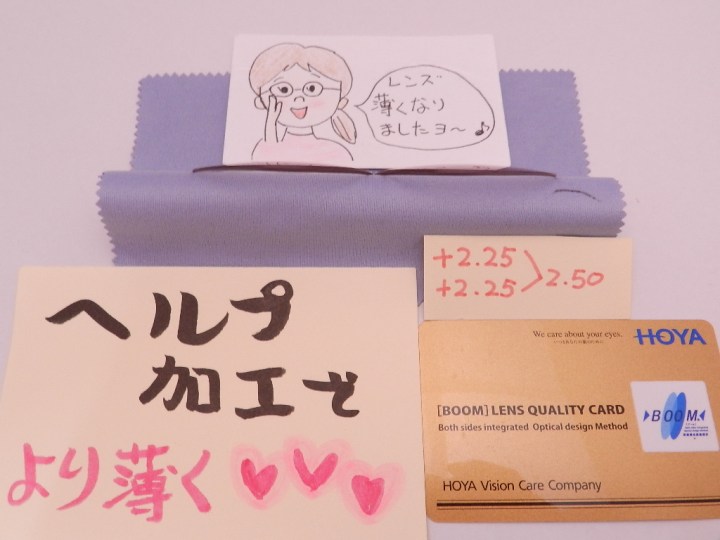 ヘルプ加工でレンズを薄くする加工をおすすめさせていただいています。