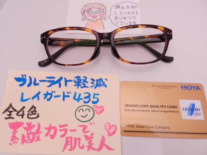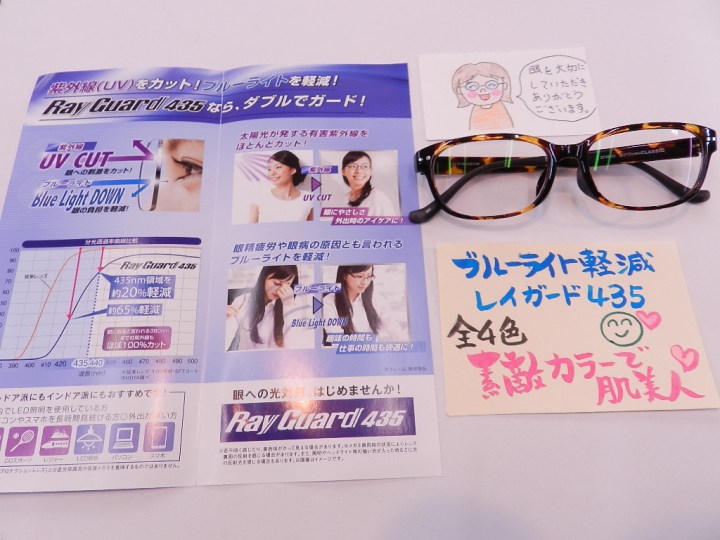 眼の健康を考えたブルーライト軽減レイガードブラウンカラーをお付けいただきました。