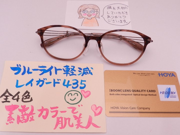 ブルーライト軽減レイガード435のイエローをおすすめさせていただきました。