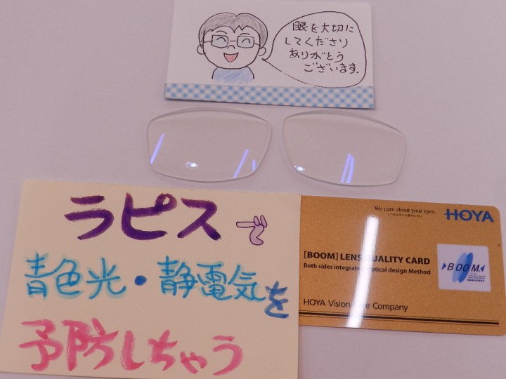 #HOYAレンズ #慣れやすい遠近両用[BOOM] #レンズの交換 #ブルーライト軽減ラピスコート #キズに強いビーナスガードコート #静電気予防レンズ #ヘルプ加工