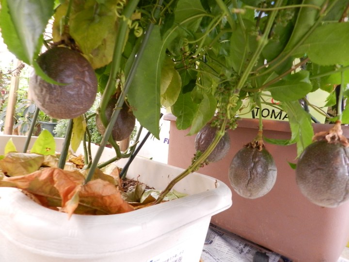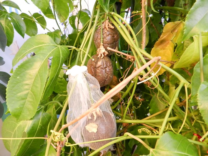 そして、秋に受粉したパッションフルーツの実が、