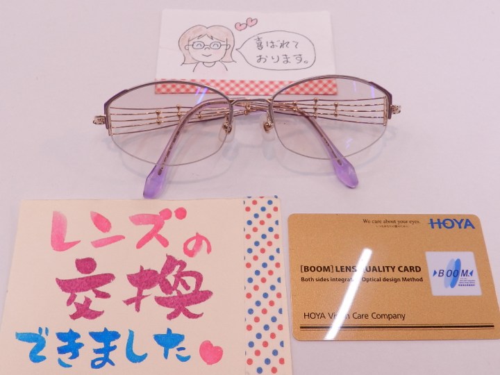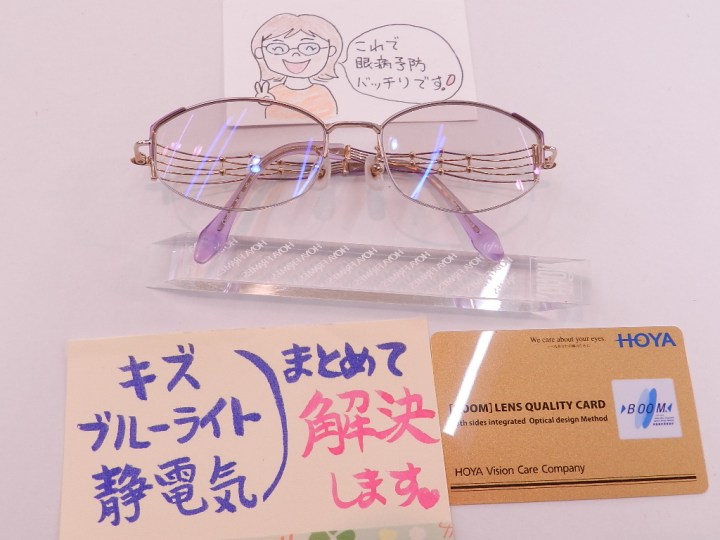 #HOYAレンズ #慣れやすい遠近両用[BOOM] #ブルーライト軽減のラピスコート #キズにも強いビーナスガードコート #キャリアカラーダブルで安心 #静電気防止 #レンズの交換 #軽くて柔らかい掛け心地のラインアート
