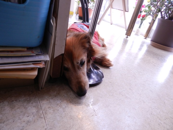 #看板犬 #チョコの日課 #愛犬 #隙間好き #挟まる #店内散歩