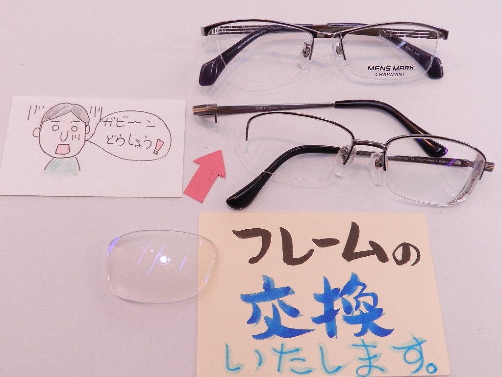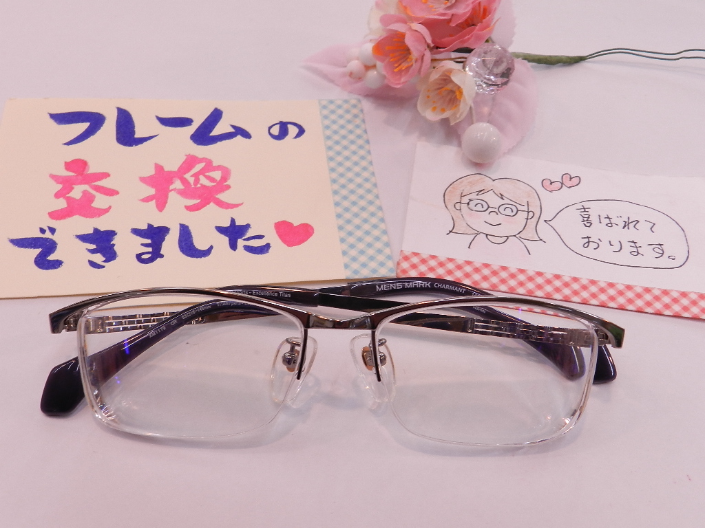 #フレームの交換 #シャルマンフレーム #メンズマーク #エクセレンスチタン #新素材 #直ぐにお入れ替え致します