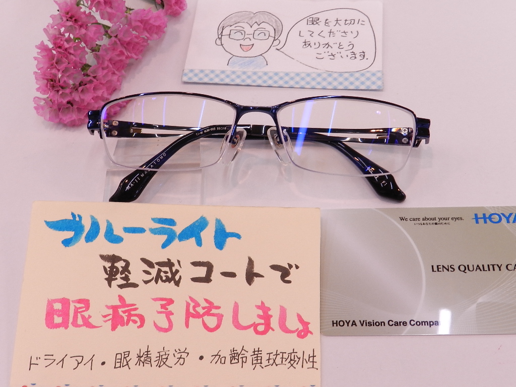 眼の健康も考えてブルーライト軽減ラピスコートをお付けいただきました。
