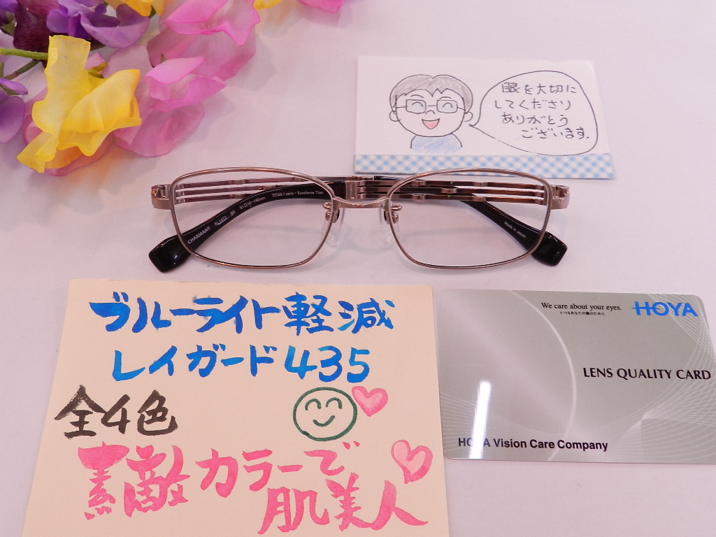 レンズには眼に有害なブルーライト軽減のレイガード435をお付けいただきました。