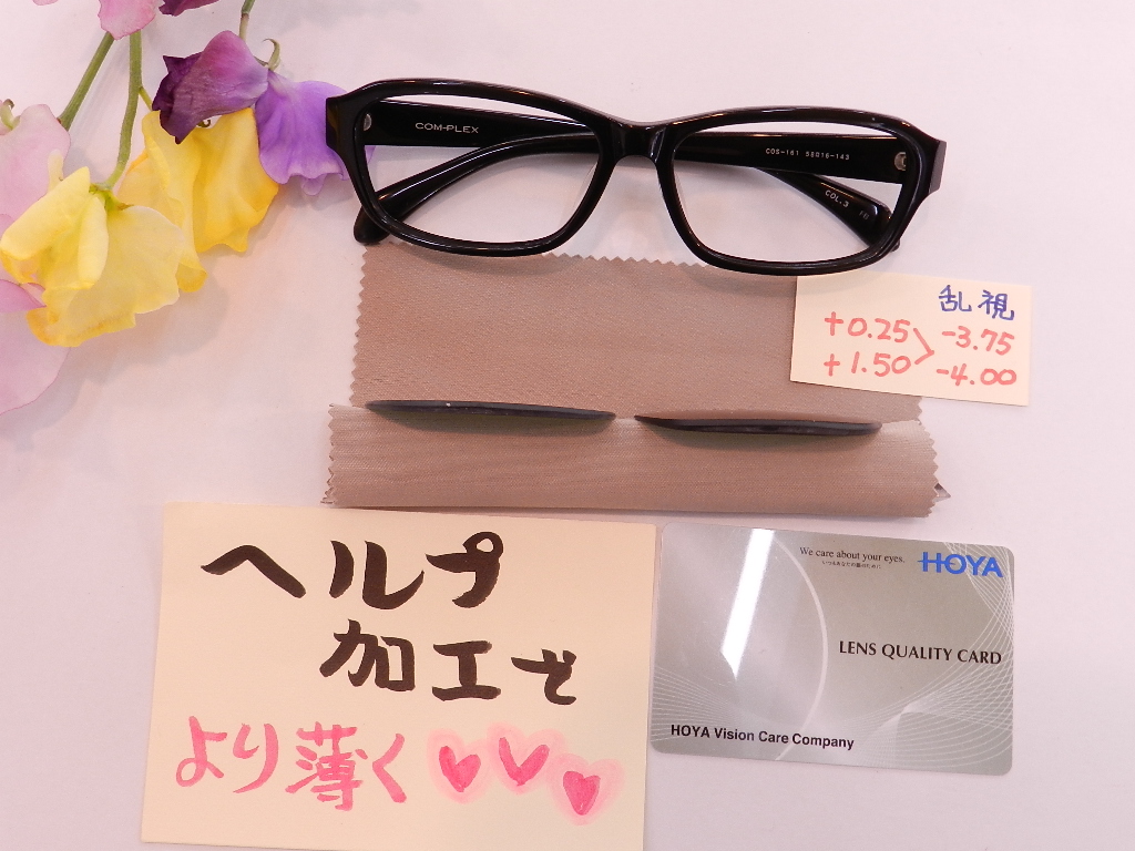 また、遠視で乱視が4と強い方ですので普段用のメガネと同じく、