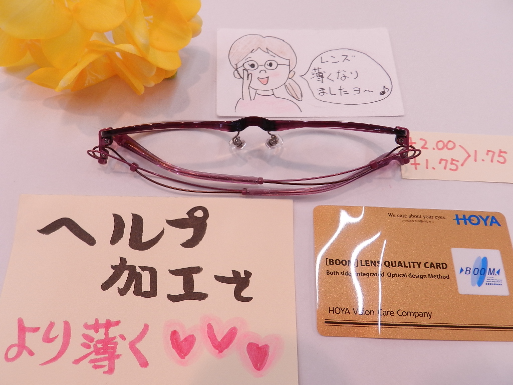 レンズを薄くするヘルプ加工をおつけいただきました。
