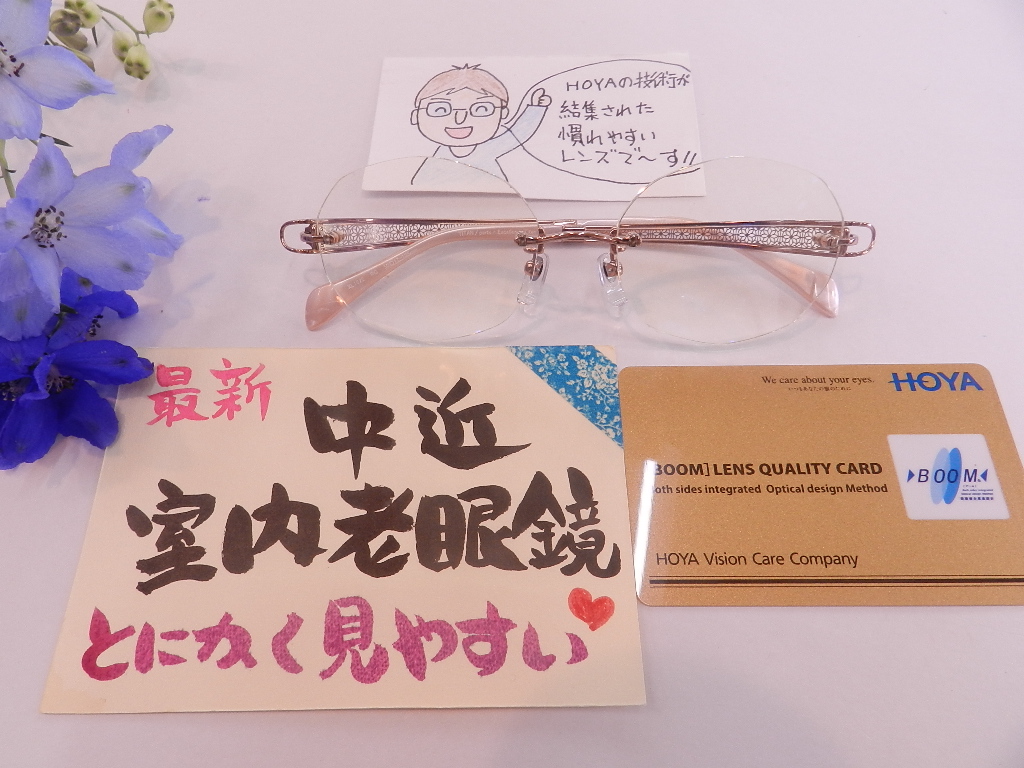 #HOYAレンズ #慣れやすい中近室内老眼鏡 #ブルーライト軽減ラピスコート #キズに強いビーナスガードコート #眼の健康を考えたブルーライト軽減レイガード435イエロー #ダブルでブルーライト軽減 #眩しさ軽減 #シャルマンラインアート #軽くて柔らかい掛け心地 #10周年記念デザイン #エクセレンスチタン #XL1622RG