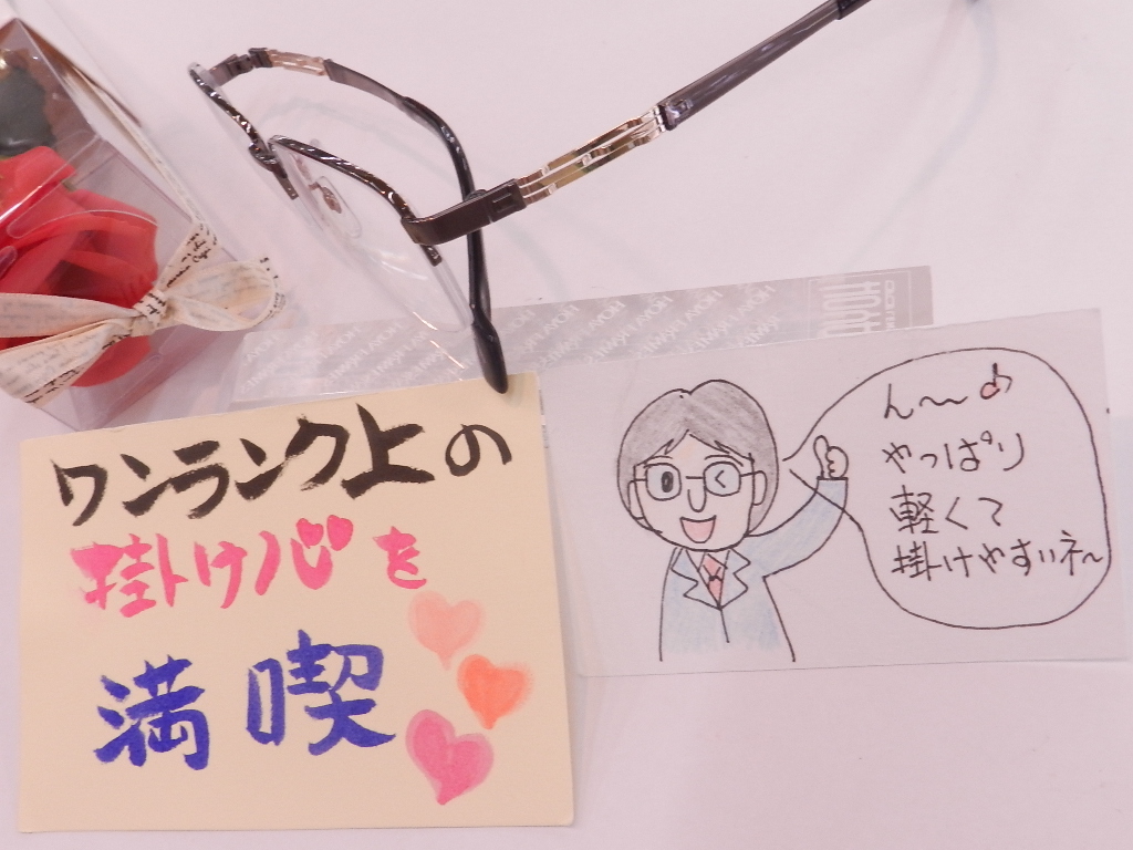 柔らかい掛け心地と軽さで評判のシャルマンフレームをおすすめさせていただきました。(*^▽^*)