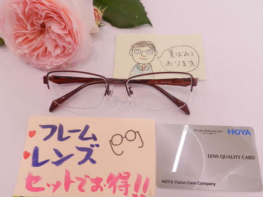 #HOYAレンズ #セット一式 #お手軽価格 #遠用メガネ #弾性樹脂素材 #紫外線カットコート #非球面レンズ使用 #屈折率1.6