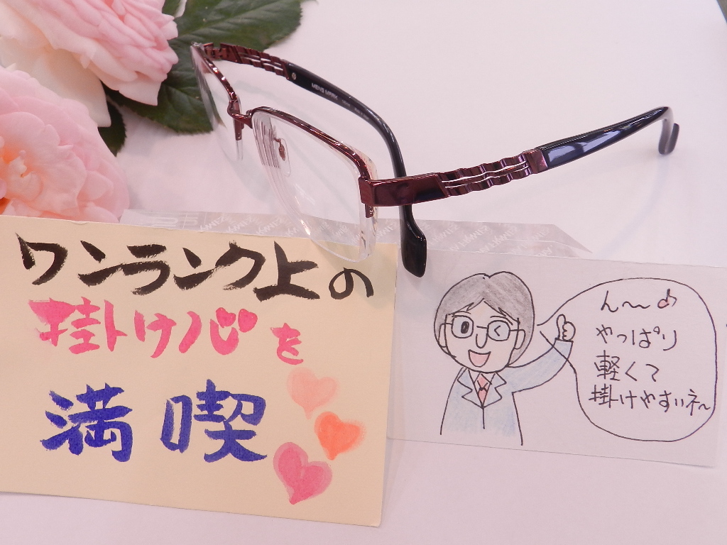 この、エクセレンスチタン使用の軽くて柔らかい掛け心地のフレームに決まりました。