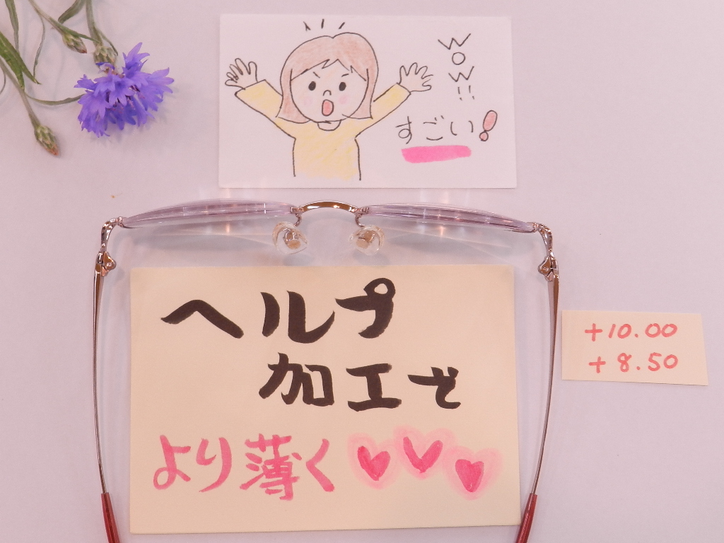 薄型屈折率1.74のレンズにヘルプ加工で、