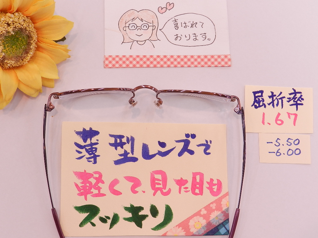 #HOYAレンズ #近用メガネ #屈折率1.67薄型レンズ #形状記憶合金 #柔らかい掛け心地