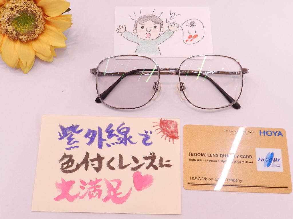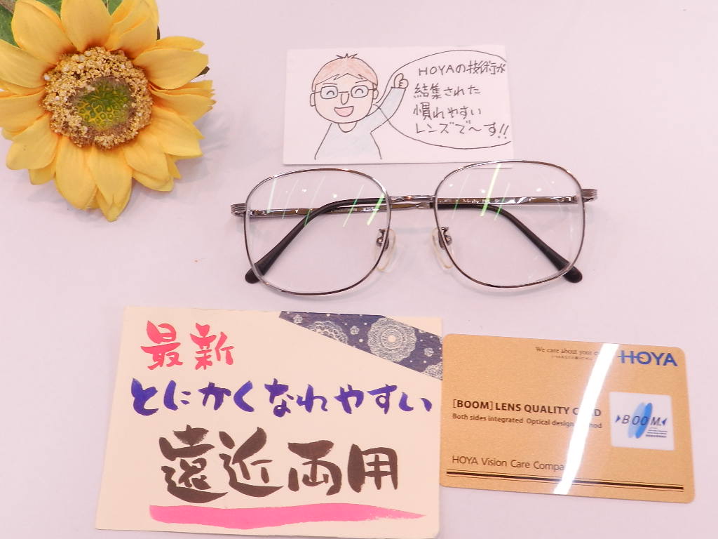 #HOYALUX #慣れやすい遠近両用[BOOM] #ウエルナ #色の変わるサンテックレンズ #レンズの交換 #紫外線に反応で色が付く #上山市メガネのエース #メガネの事ならお任せください