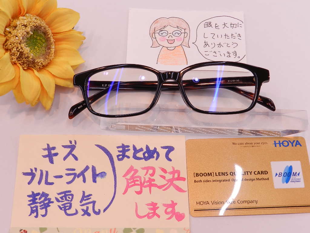 パソコンで眼が疲れにくいブルーライト軽減ラピスをお付けいただきました。