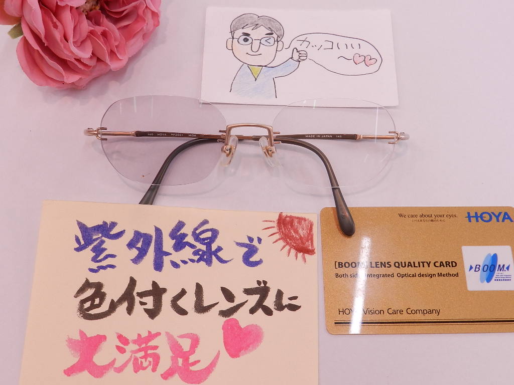紫外線に反応して色が変わるサンテックレンズを前回同様お付けいただきました。
