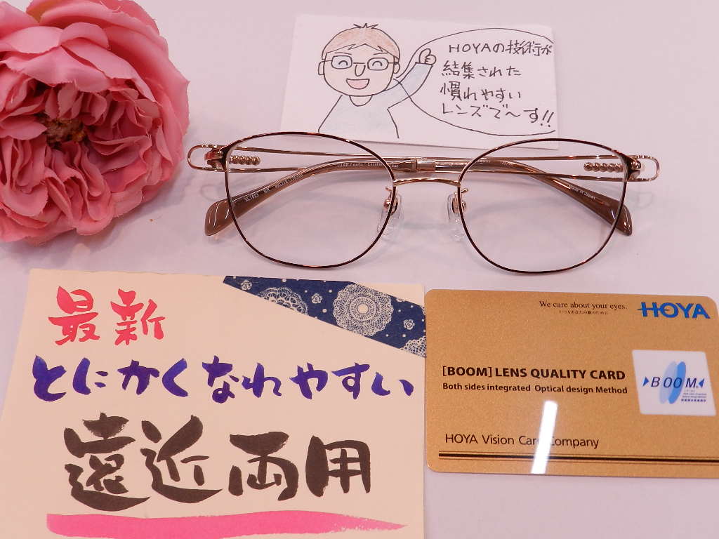 #HOYALUX #慣れやすい遠近両用 #[BOOM]ウエルナ #眼の健康を考えたブルーライト軽減レイガード435ブラウン系 #レンズを薄くするヘルプ加工 #軽くて柔らかい掛け心地 #シャルマンフレーム #ラインアート #エクセレンスチタン #品番XL1623BR