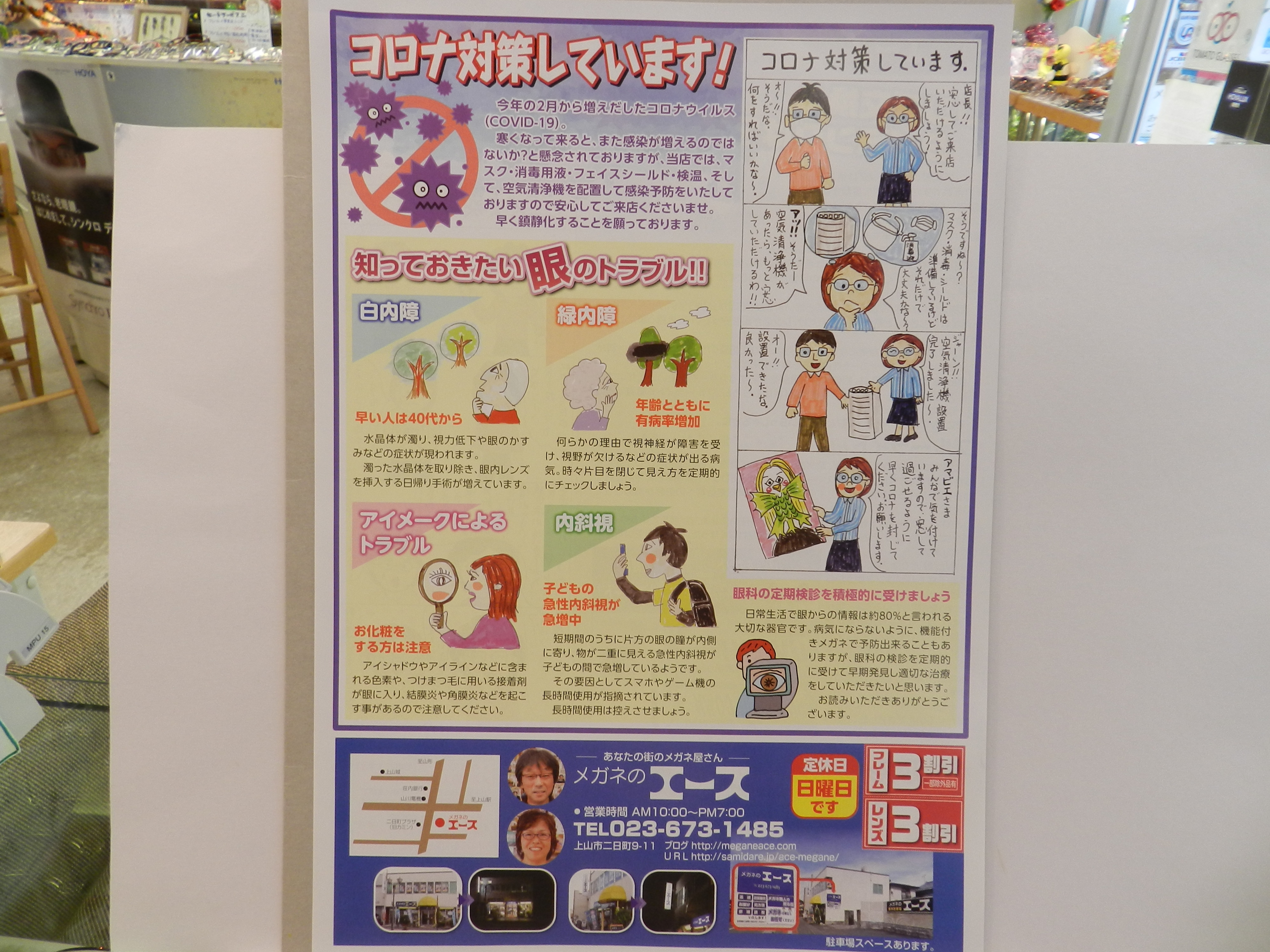 #売らないチラシ #眼病予防 #レンズの交換タイミング #色んな眼病の注意喚起 #コロナ対策 #上山市メガネのエース #メガネの事ならお任せください