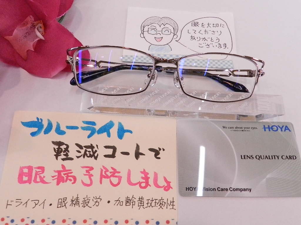 #HOYAレンズ #ブルーライト軽減コート #眼の健康を考えたコート #オプション付けられます #超薄型屈折率1.74 #フレーム形状記憶合金使用 #上山市メガネのエース #メガネの調整 #メガネの事ならお任せください