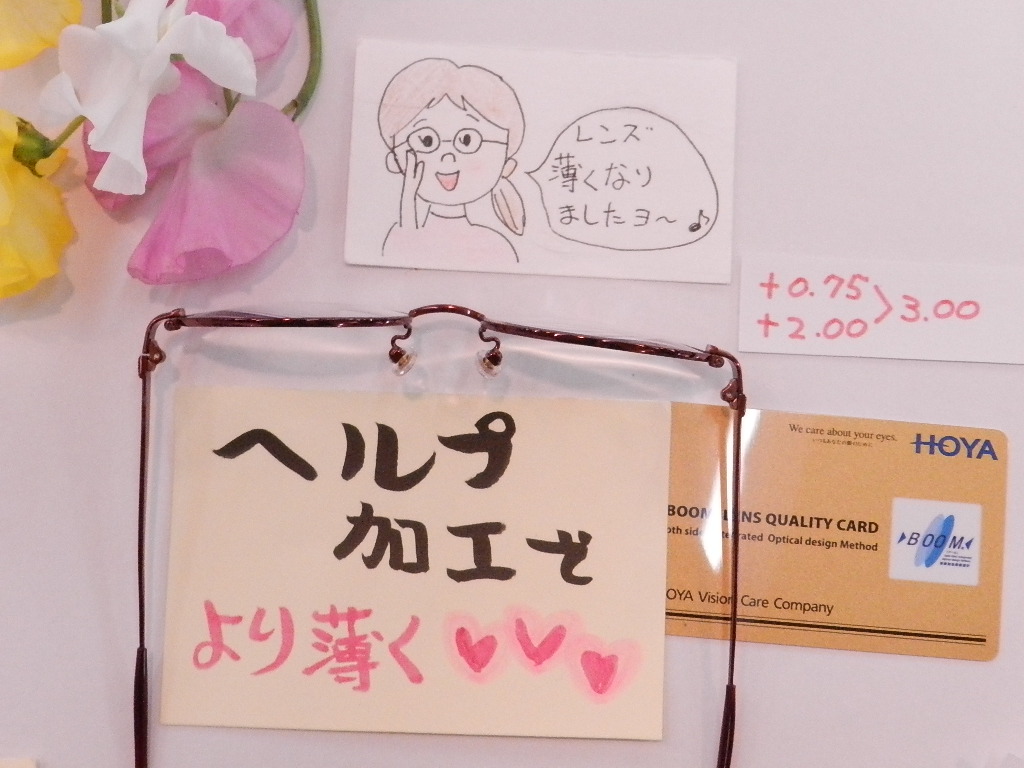 レンズは屈折率1.67の薄型レンズをお使いいただきました。