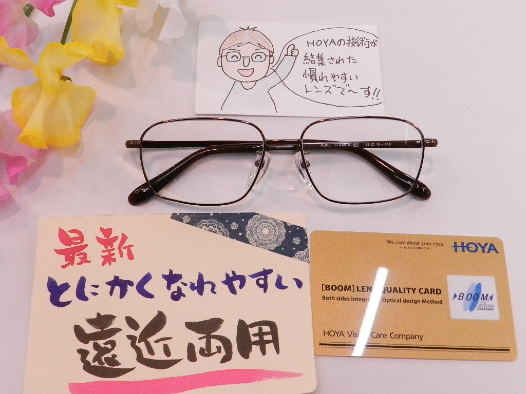 #HOYALUX #慣れやすい遠近両用[BOOM] #見えやすさが違います #レンズを薄くするヘルプ加工 #メガネのエース上山店 #メガネの調整 #メガネの修理 #持ち込みフレームお受け致します #レンズの交換 #お子様用メガネ #眼の健康を考えたブルーライト軽減コート・カラー