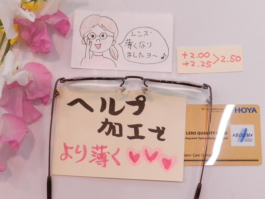 レンズを薄くするヘルプ加工をお付けいただきました。
