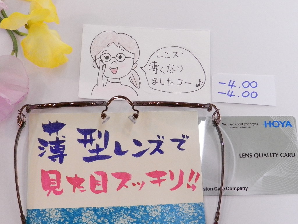 レンズは屈折率1.67の薄型レンズをお使いいただきました。