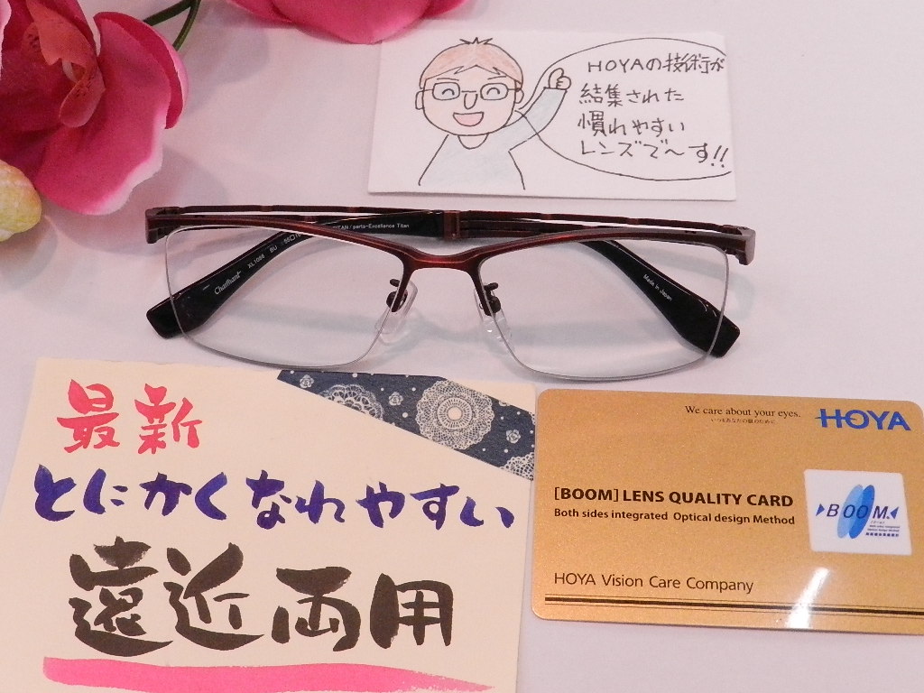 また、レンズは前回同様慣れやすい遠近両用[BOOM]をお選びくださいました。
