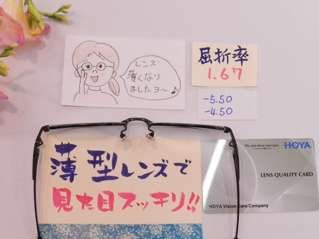 屈折率1.67の薄型レンズをお使いいただきました。