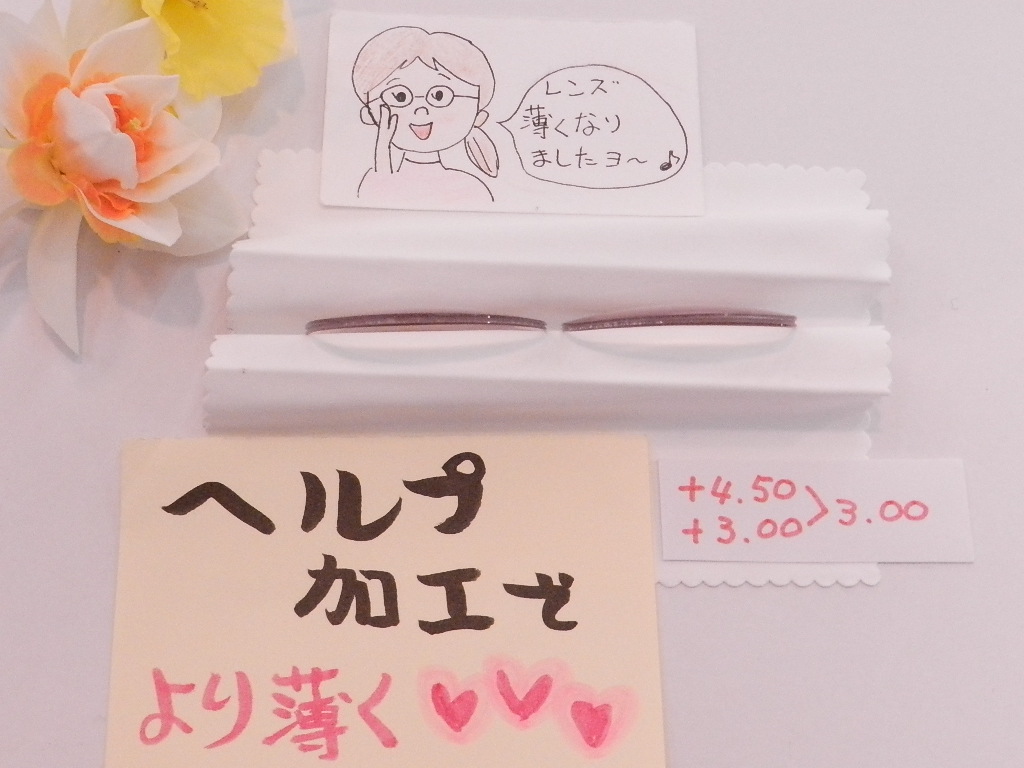 手元度数も強いので薄型の1.67のレンズにヘルプ加工で、