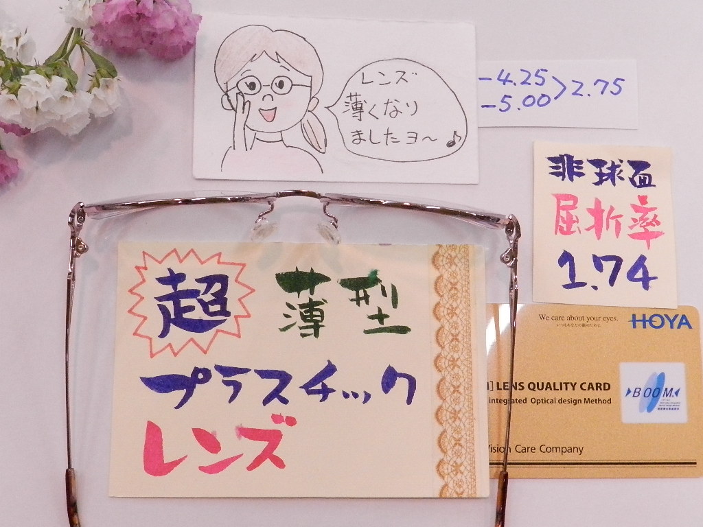 レンズの厚みが目立たない超薄型屈折率1.74をお使いいただきました。