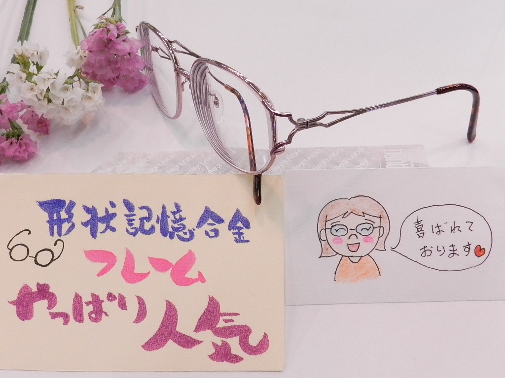 テンプル部分は形状記憶素材で軽いフレームをお選びいただきました。