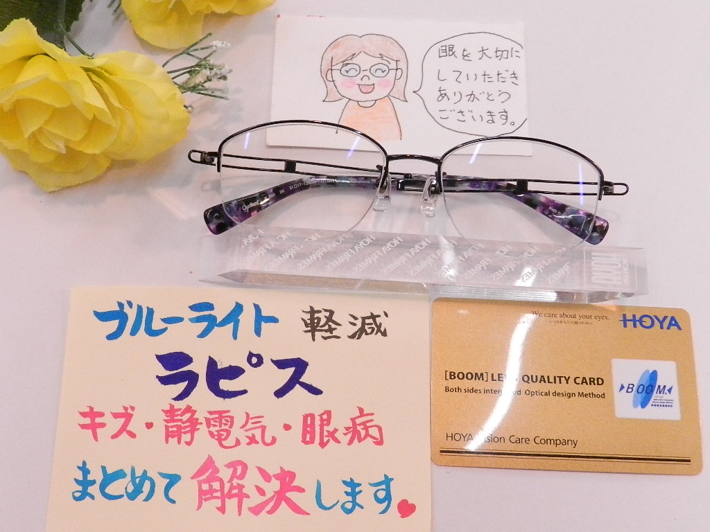 ブルーライト軽減のコートラピスをお付けいただきました。