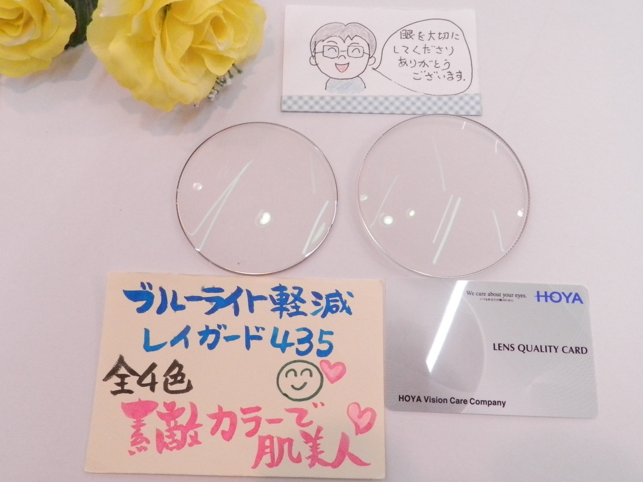 眼の健康を考えたブルーライト軽減カラーレイガード435ブラウンをお付けいただきました。