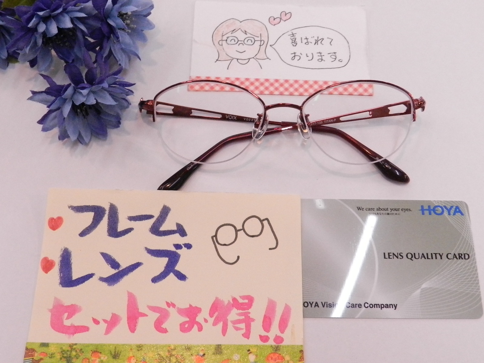 #HOYAレンズ #手元用 #セット一式 #お買い得商品 #フレーム+レンズ+ケース+メガネ拭き #メガネのエース上山店 #メガネの調整 #メガネの修理 #持ち込みフレームにレンズお入れ致します #レンズの交換 #慣れやすい遠近両用[BOOM]ウエルナ #眼の健康を考えたブルーライト軽減コート・カラー #お子様用メガネ