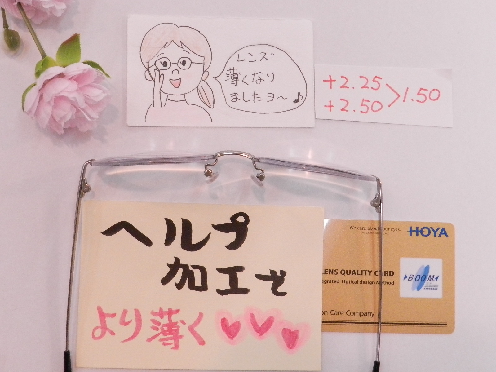 また、レンズを薄くするヘルプ加工を付けさせていただきました。